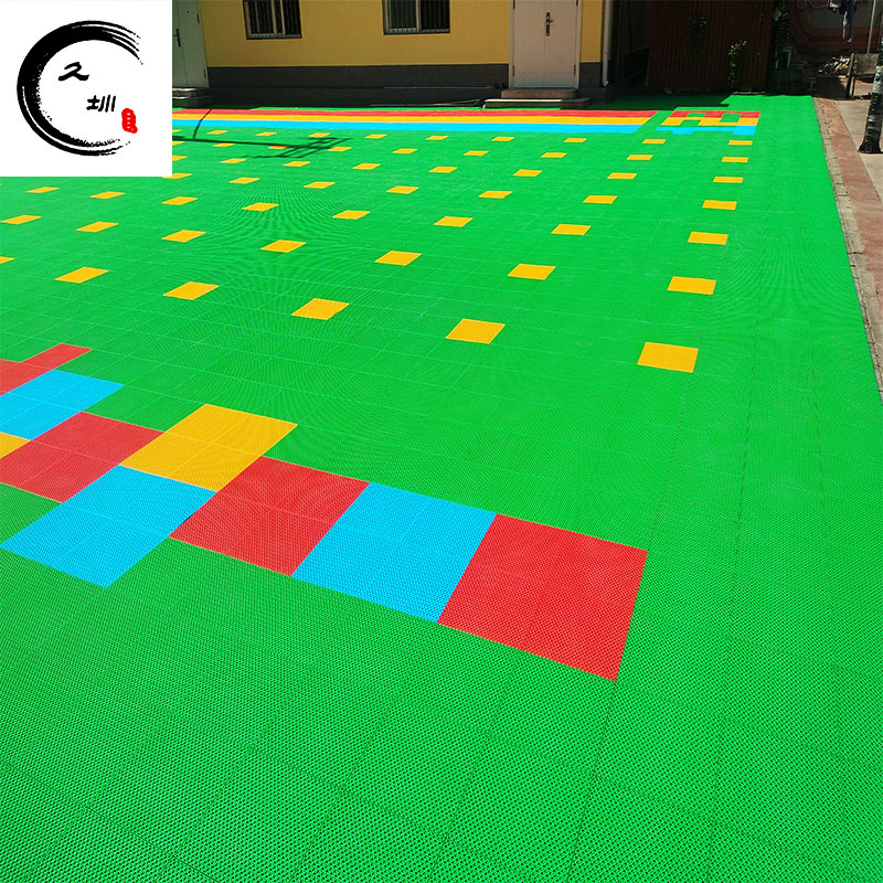 幼兒園懸浮拼裝地板只需平整的水泥或?yàn)r青地面即可適用鋪設(shè),室內(nèi)室外均可使用。耐候性極高,不怕日曬高溫、雨淋潮濕、冰雪嚴(yán)寒、不翹曲剝落變形。沒有氣候地域限制,雨后場地不積水。 與普通的地面材料相比,幼兒園鋪裝的懸浮式拼裝地板在沾水的情況下腳感更澀,即越遇水越澀,解除老年人及兒童會滑到的安全顧慮。不會因?yàn)闈穸却蠖l(fā)生霉變。