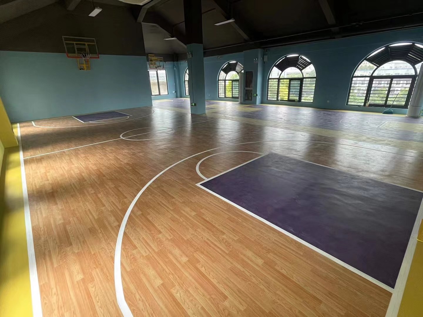 其次,耐用是籃球場(chǎng)膠地不可忽視的性能指標(biāo)?;@球場(chǎng)作為高強(qiáng)度運(yùn)動(dòng)場(chǎng)所,其地面需要承受頻繁的跑動(dòng)、跳躍和摩擦。因此,籃球場(chǎng)膠地必須具備良好的耐磨性、抗壓性和抗老化性,確保在使用過程中不易磨損、開裂或變形。只有這樣,才能確?;@球場(chǎng)的長(zhǎng)期使用壽命,減少維修和更換的頻率,降低運(yùn)營(yíng)成本。