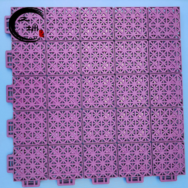 河北環(huán)保懸浮式拼裝地板表面結(jié)構(gòu):表面四宮格、九宮格、十六宮格、或二十五宮格軟連接內(nèi)圓外方網(wǎng)格紋路,底部均勻分布十字狀觸角,背面可以加彈簧墊也可以不加彈簧墊,提高沖擊吸收。