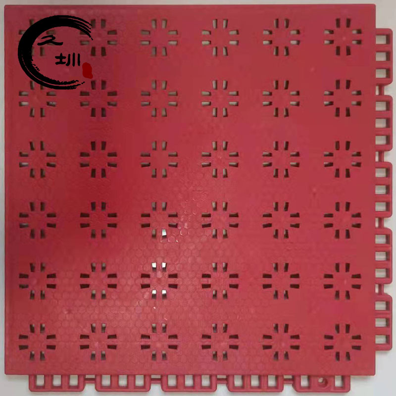 室外籃球場ESE熱塑懸浮地墊運(yùn)動場TPU軟塑拼裝地板支撐采用米子口子十字支撐,可以使面層更平整,運(yùn)動時不會使面層變形:“米字形”密集性柱腳有序支撐,形成穩(wěn)固的抗沖擊系統(tǒng),沖擊吸收優(yōu)異,表面采用蜂窩式防滑紋路處理。